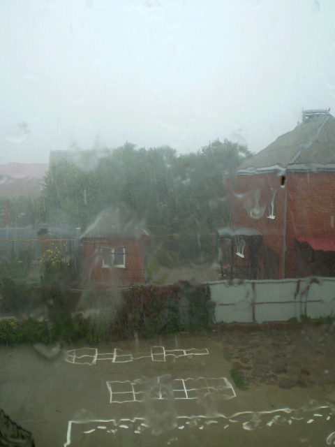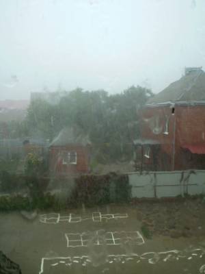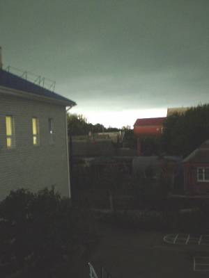 Вчера у нас было необычное природное явление - резко потемнело так, что в 12-30 дня стали включать лампочки. Я на работе писала что-то очень увлеченно, подняла голову и подумала, что до ночи засиделась и не заметила... Вот такая темень была видна из окна в обед. На улице тоже было как во время затмения: Потом - проливной дождь, которых давно не видела. Как весной налетел. Даже линии все кривые из-за струй воды по стеклу. А потом -лужи и тепло.